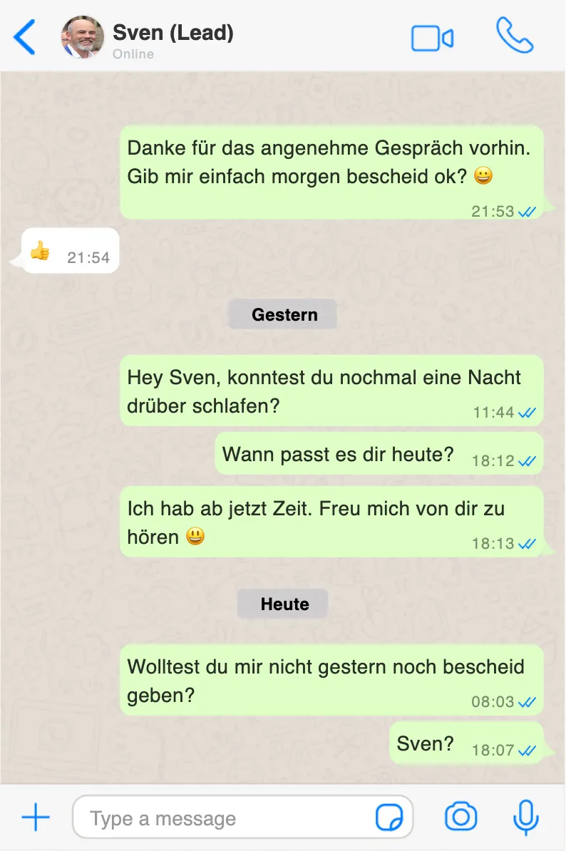 Chatverläufe wie diese sind die bittere Realität vieler Coaches und Berater in 2025:
